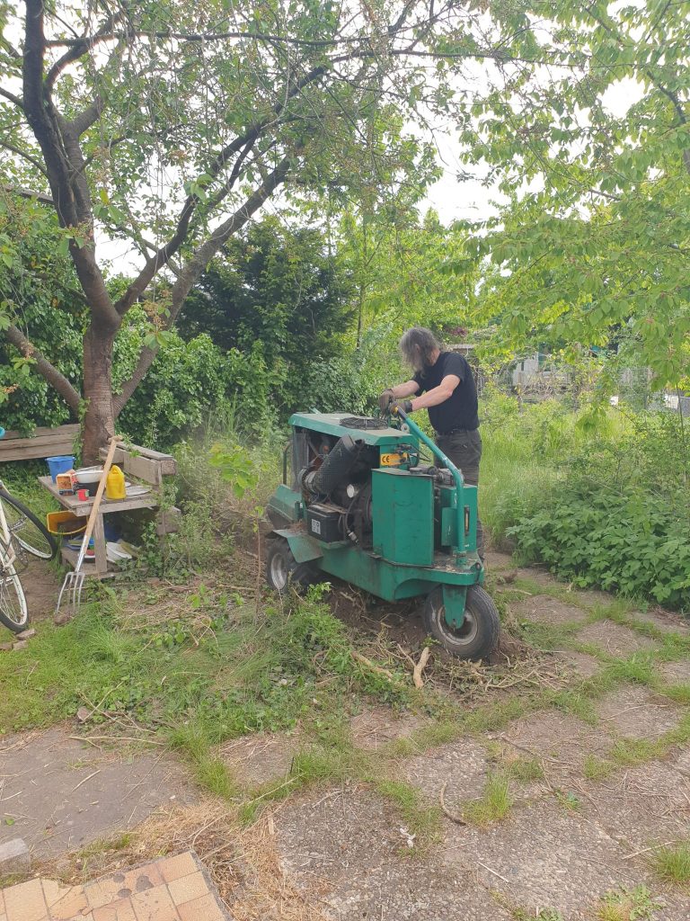 Der kostbare Rückhalt der Schlüterschen war auch während der Gartensaison 2025 an anderen Stellen spürbar: LeNes Elfriede konnte ihren alten und sehr schwergängigen Rasenmäher durch einen Neuen ersetzen, der das Mähen hinsichtlich Mähtempo und Geräuschkulisse deutlich komfortabler machte. LeNes Gartenkosmonauten konnten eine Wurzelfräse inkl. „Experten in der Bedienung der Fräse“ buchen und damit endlich eine ebene Grundlage hinter ihrer Matschküche für ihre Freispielbaustelle schaffen.